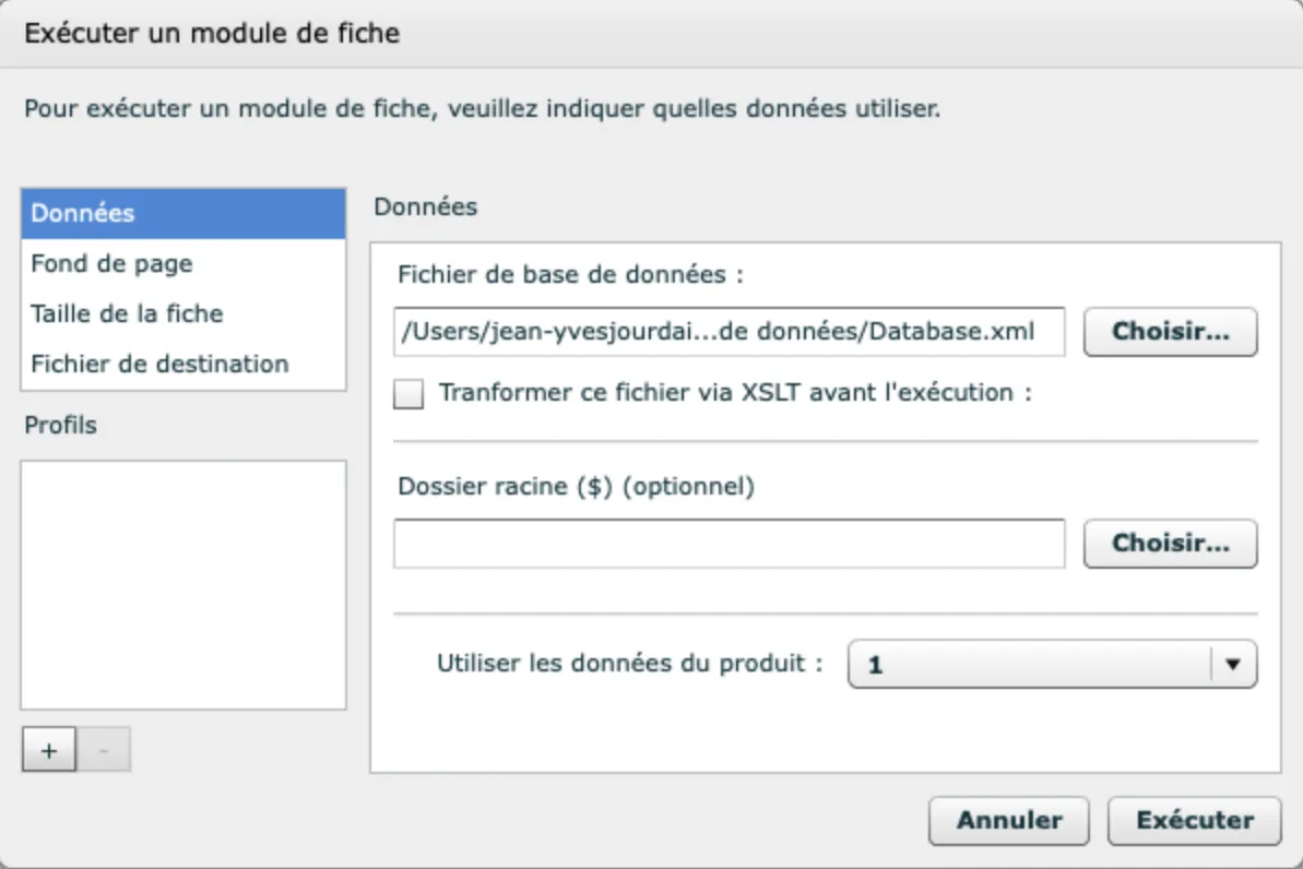 - Je n’ai pas besoin de désigner le fichier InDesign puisque c’est le fichier qui est aux côtés du module qui est automatiquement utilisé ;